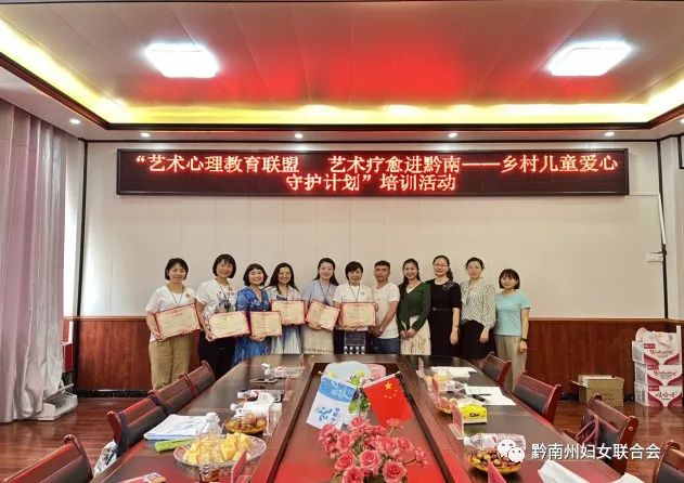 座谈中,来自艺术心理教育联盟的6位老师分别交流了疗愈课程的意义和到荔波培训的感受,并就过去如何推进心理健康教育工作做了经验分享,对在开展工作中遇到的儿童心理困难、问题进行了反馈,同时就如何帮助孩子走出心理困境提出了建议和意见。座谈会上,大家各抒己见,畅所欲言,相互交流、相互学习。为表示对艺术心理教育联盟在黔南为老师和孩子做心理教育培训的感谢,座谈结束后,柏汶君为老师们发放荣誉证书。