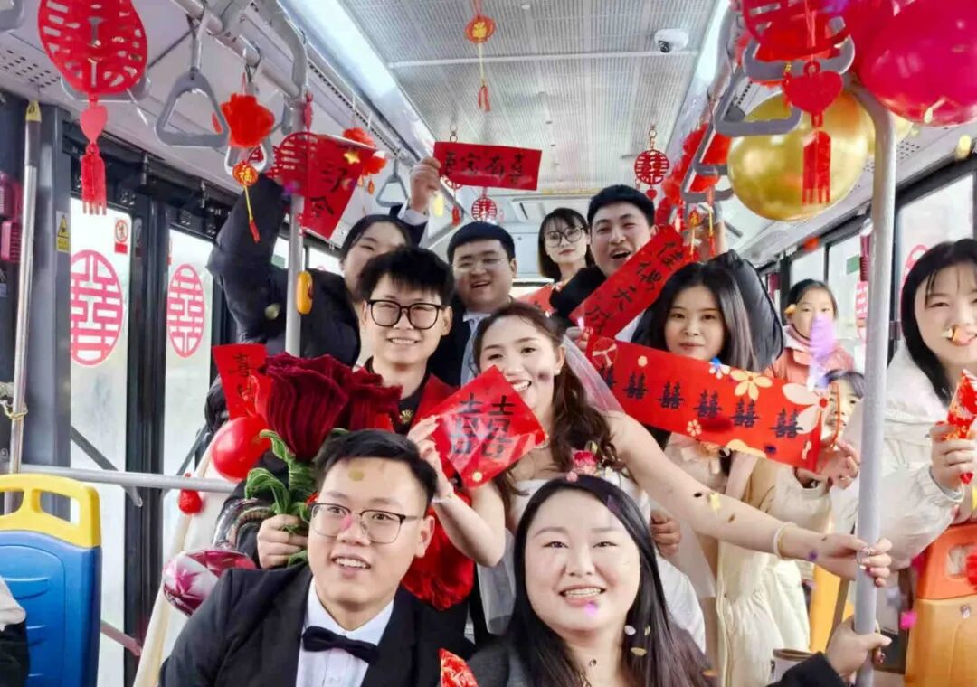 “用公交车作为婚车,和好朋友们聚在一起,唱歌拍照,岂不更有意义。而且现在倡导绿色低碳,提倡喜事新办、简办。我们的想法得到亲朋好友的一致赞同,大家都觉得这种方式挺新颖,挺有创意。我们希望有更多的年轻人采用类似的方式举行婚礼,既让婚礼热热闹闹,又展现了文明新风尚。”新娘郑银凤说。