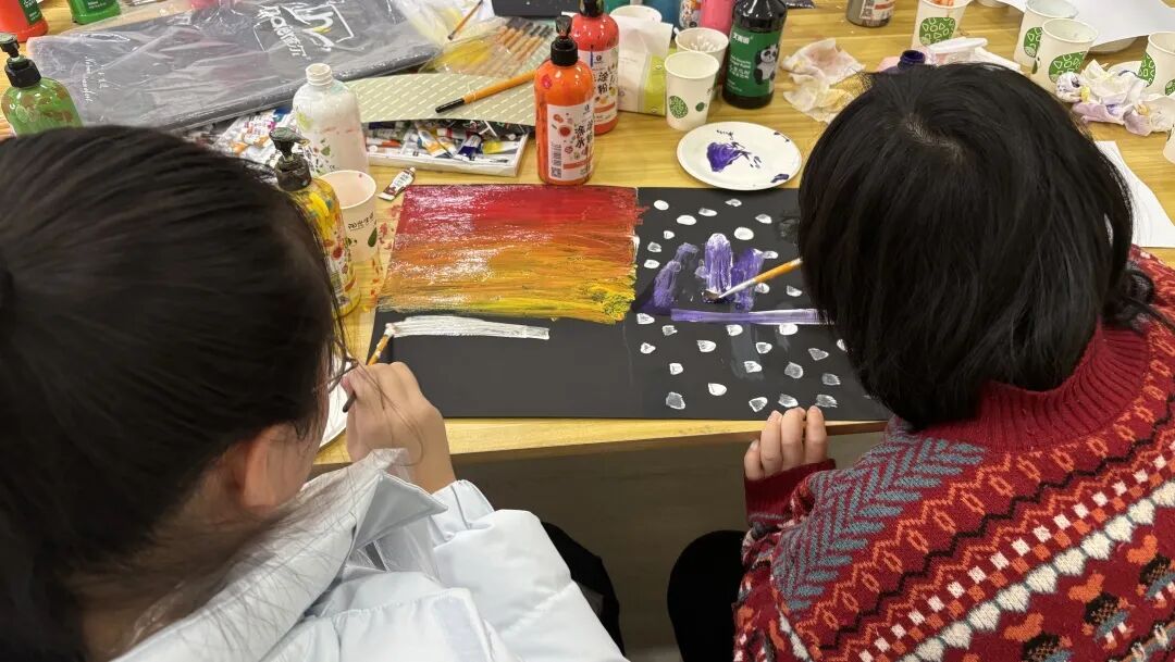 即使是性格内向的孩子,也能通过画笔与同伴建立连接、心意相通。杨老师表示:“艺术是跨越语言的沟通方式,无论是独立创作还是协作作画,都是孩子们探索自我、理解他人的过程。在无声的交流中,他们学会了倾听与接纳,也发现了合作带来的无限可能。”