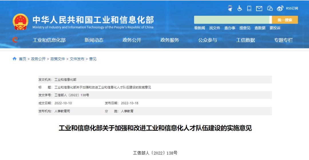 据工业和信息化部官网消息,为深入贯彻中央人才工作会议精神,落实《国家“十四五”期间人才发展规划》等文件要求,切实为工业和信息化高质量发展提供有力人才保障,工业和信息化部近期发布《关于加强和改进工业和信息化人才队伍建设的实施意见》(以下简称《意见》),其中提出“引导和支持用人单位在薪酬待遇、住房、子女入学等方面加大支持力度,解决青年科技人才的后顾之忧,让他们安身、安心、安业。”