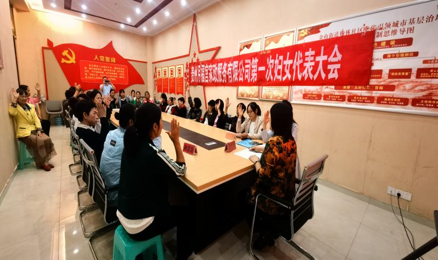 公司妇委会成立后,福泉市妇联立足引领服务联系职能,按照“五亮八有六进家”建设标准结合实际,指导月福宫家政服务有限公司建立了“妇女微家”,拟定了妇女议事会制度、妇委会工作制度及“妇女微家”管理制度等。