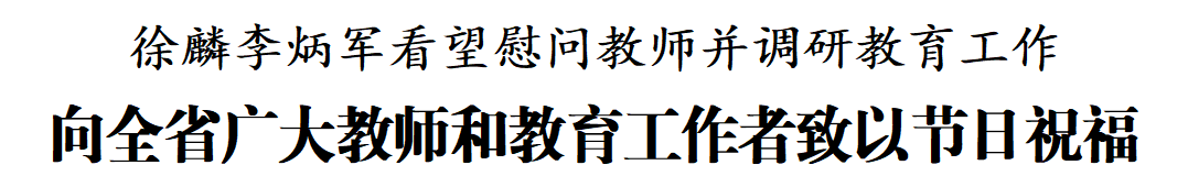 在第41个教师节来临之际,省委书记徐麟,省委副书记、省长李炳军分别在六盘水市、贵阳市看望慰问教师并调研教育工作,深入学习贯彻习近平总书记关于教育的重要论述和给全国特岗教师代表的回信精神,代表省委、省政府向全省广大教师和教育工作者致以节日祝福和美好祝愿。省领导郭强、张敬平参加。