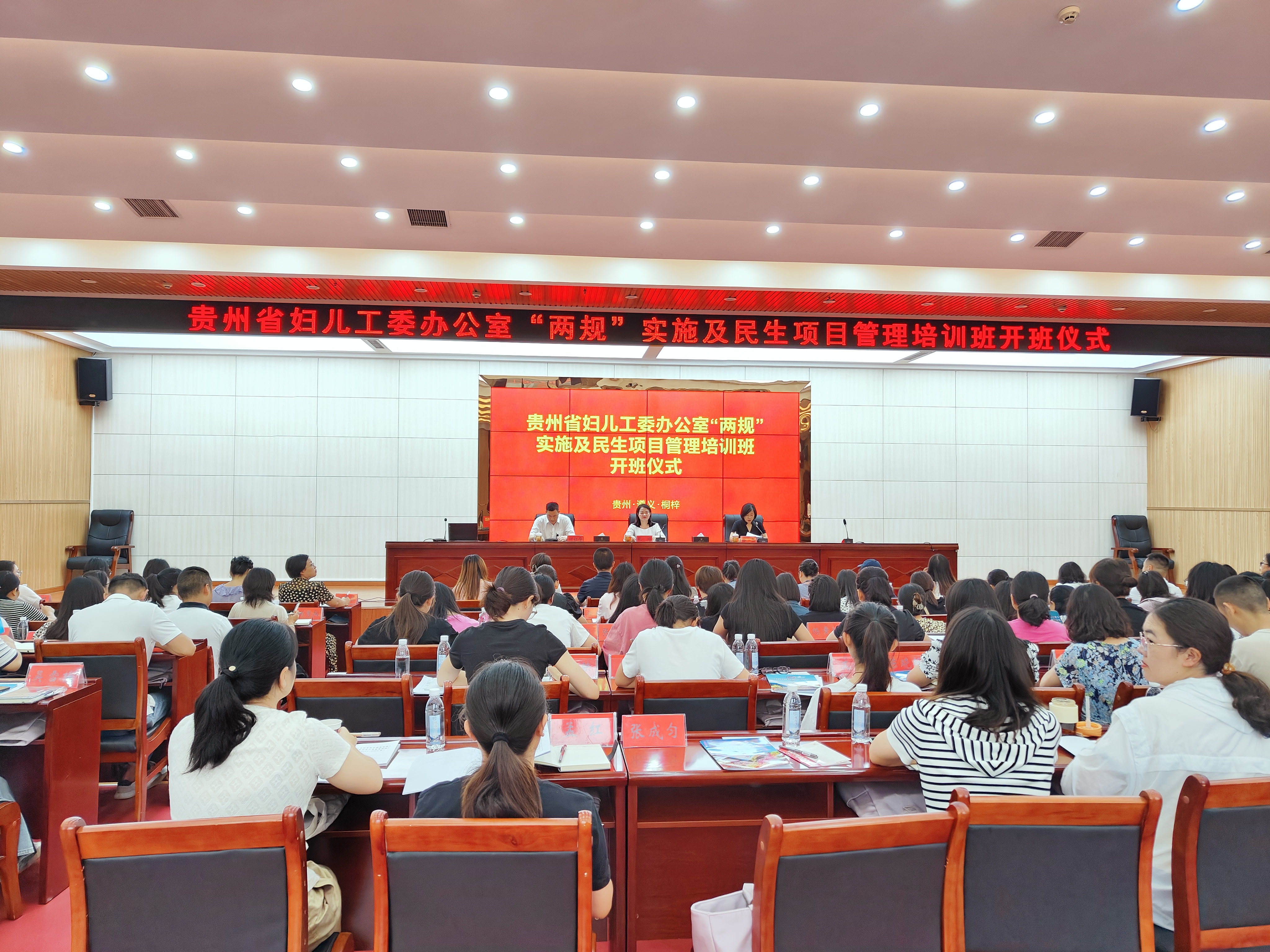 省妇联副主席张婷出席开班仪式并为培训班学员授课,遵义市妇联党组书记、主席杨怡主持开班仪式,桐梓县委副书记、县委政法委书记何祖华出席了培训班开班仪式并致辞。各市州妇联分管领导、妇儿工委办公室负责人或项目管理人员共100人参加培训。