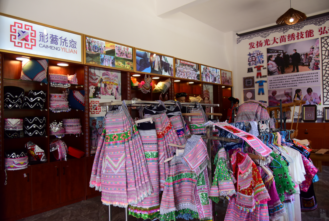 “为了深入挖掘和传承独特的少数民族文化资源,帮助建档立卡户、边缘户等群众提升就业技能,增加收入,同时加快村集体经济发展,锦星村结合民族文化资源,2021年由锦星村党支部领办合作社成立了四源文化有限公司,主要以加工苗族服装为主。公司的建成不仅传承了民族文化,还带动了本地方的传统织麻及蜡染手工艺等产业的发展。”金坡乡锦星村党支部书记、主任杨峻如是说。