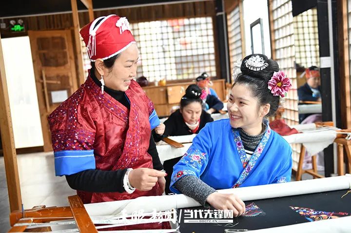 龙禄颖与徒弟两代人进行苗绣传承 受访者供图
