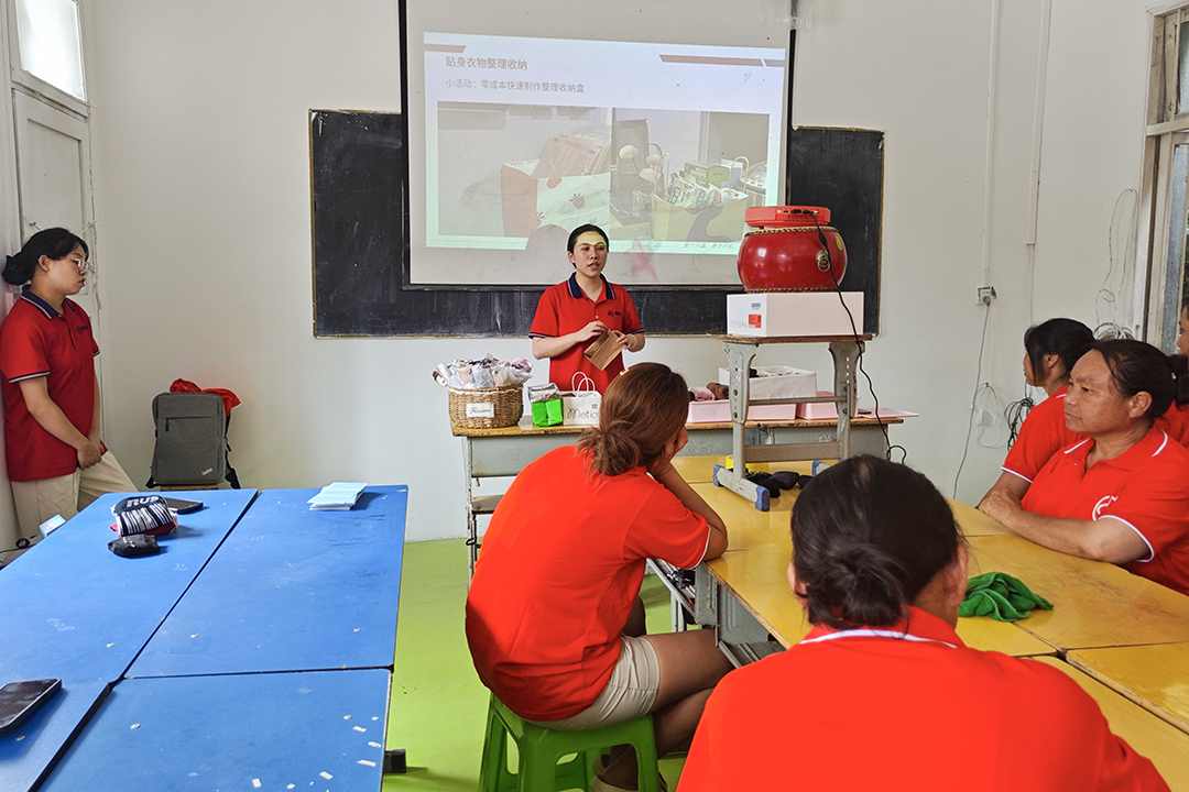 培训中,来自“贵州省黔灵女家政”的培训工作人员通过PPT演示、现场教学和随堂练习,从衣物折叠、整理收纳流程、厨卫物品规划等方面,为学员们重点培训收纳整理方面的专业知识。让大家充分认识家政工作的重要性,充分理解衣物分类清洗、家庭环境整洁、厨卫物品有序规划等良好的行为习惯对于个人和家庭的好处。
