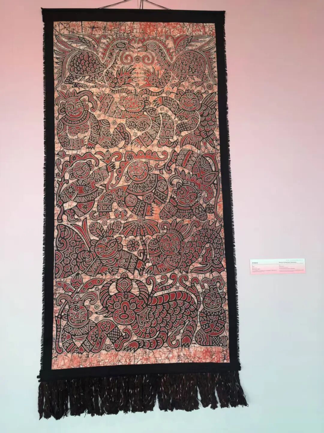 为蜡染作品,由贵州省工艺美术大师郑清音设计制作。作品采用苗族刺绣蜡染技艺,以大胆奔放的艺术形式,对传统凤凰形象进行了重新诠释,展现了凤凰优雅美丽的气质,象征着吉祥和谐与生生不息。